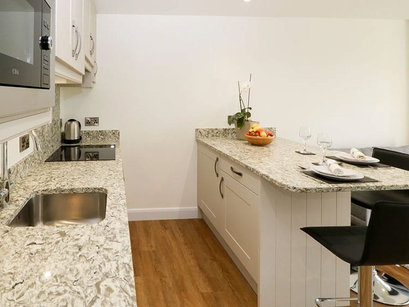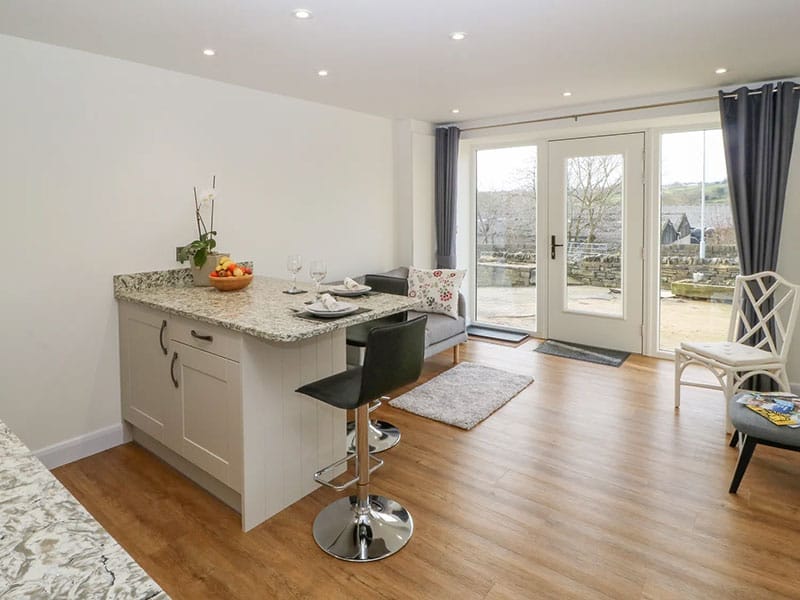 1 Barn Cottages is part of a Grade II listed barn conversion dating back to the 17th century, thoughtfully transformed into a romantic bolthole for couples wishing to explore the surrounding area of West Yorkshire. The cottage has a bright, airy open-plan interior with a compact yet well-equipped kitchen, ideal for preparing home-cooked meals to enjoy at the breakfast bar while taking in the beautiful farmland scenery through the floor-to-ceiling windows. Outside is a small patio, perfect for a morning coffee or an evening glass of wine as the sun sets over the fields.