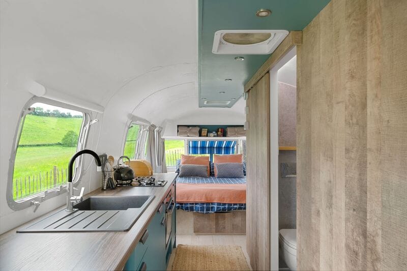 This super-cool 1980s American Airstream has been cleverly transformed into a unique glamping retreat for couples looking to explore the beautiful South Devon countryside. Set on a working farm in the village of Kenn, it offers a stylish and surprisingly spacious escape surrounded by nature.