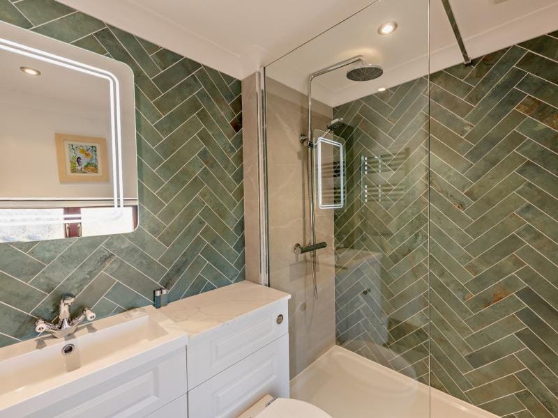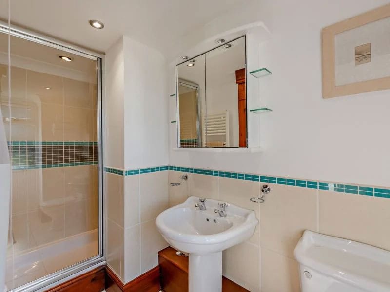 Shower room with shower enclosure, basin, and WC