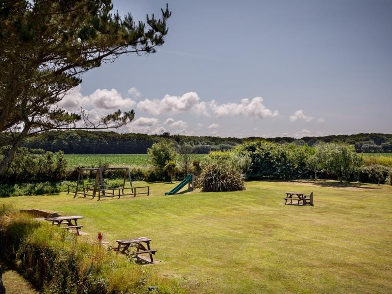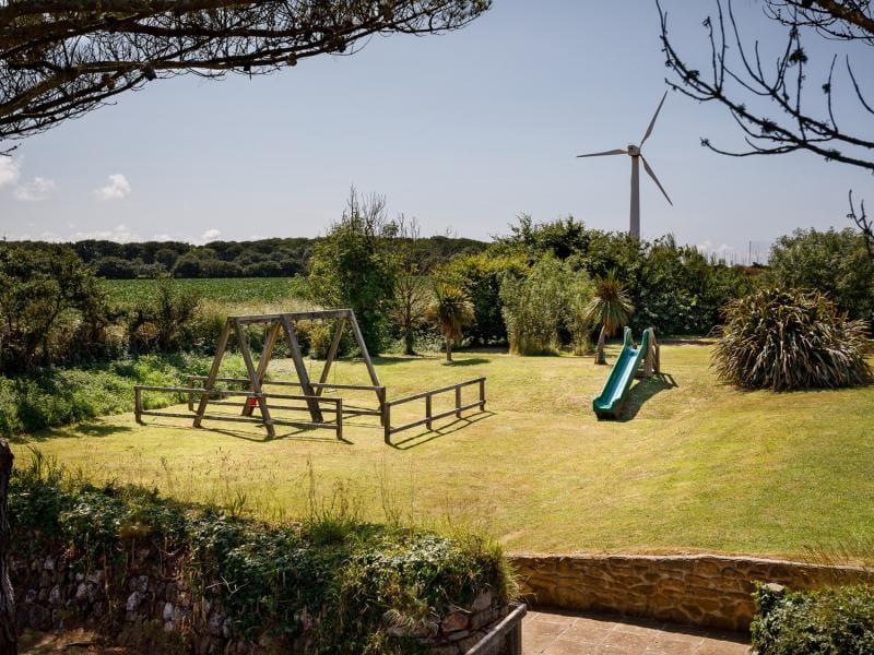 Outside, a large terrace with dining furniture and barbecue is well suited to long, leisurely lunches, while the hot tub offers the option of a restorative soak beneath the starry evening sky. A smaller patio acts as a natural suntrap, ideal for morning coffee or a quiet drink at sunset. Children will appreciate the shared play area, complete with swings, slide and football nets.