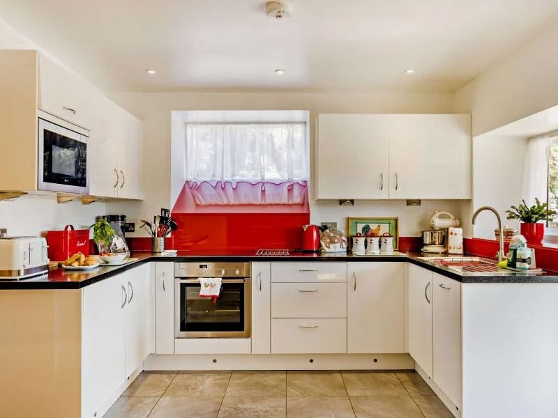 Electric oven and hob, microwave, coffee machine, fridge/freezer, kettle, toaster, dishwasher, washing machine